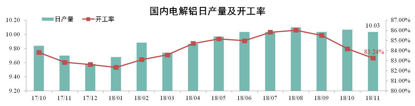 分析認為:11月鋁價市場低迷,高成本企業減產居多,加之采暖季影響,電解鋁產量下降。鋁價的大幅下跌是減產的根本原因,12月電解鋁下游需求或繼續疲軟,預計產量仍有下行趨勢。